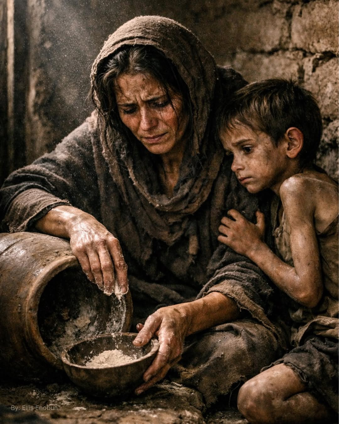 Enken i Sarepta er ikke bare fattig – hun er på randen av døden. Hun sier det selv: Dette er det siste måltidet. Etter dette kommer døden!